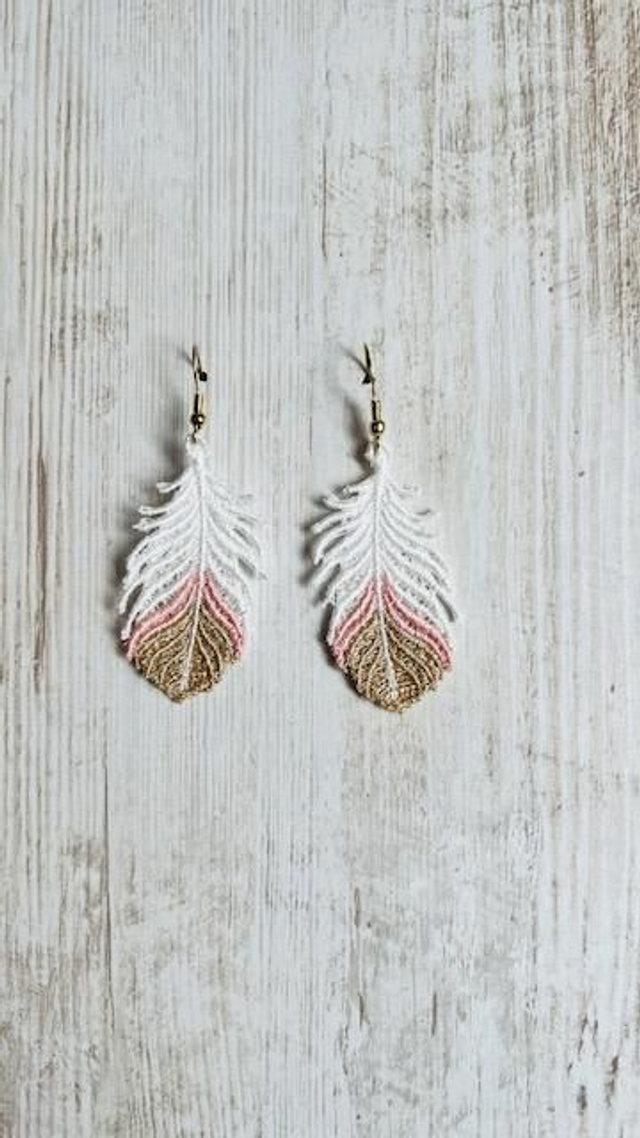Boucles d'oreilles "feuilles tricolores" en dentelle