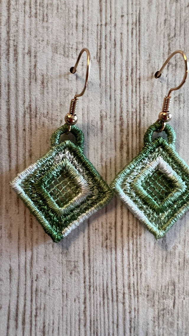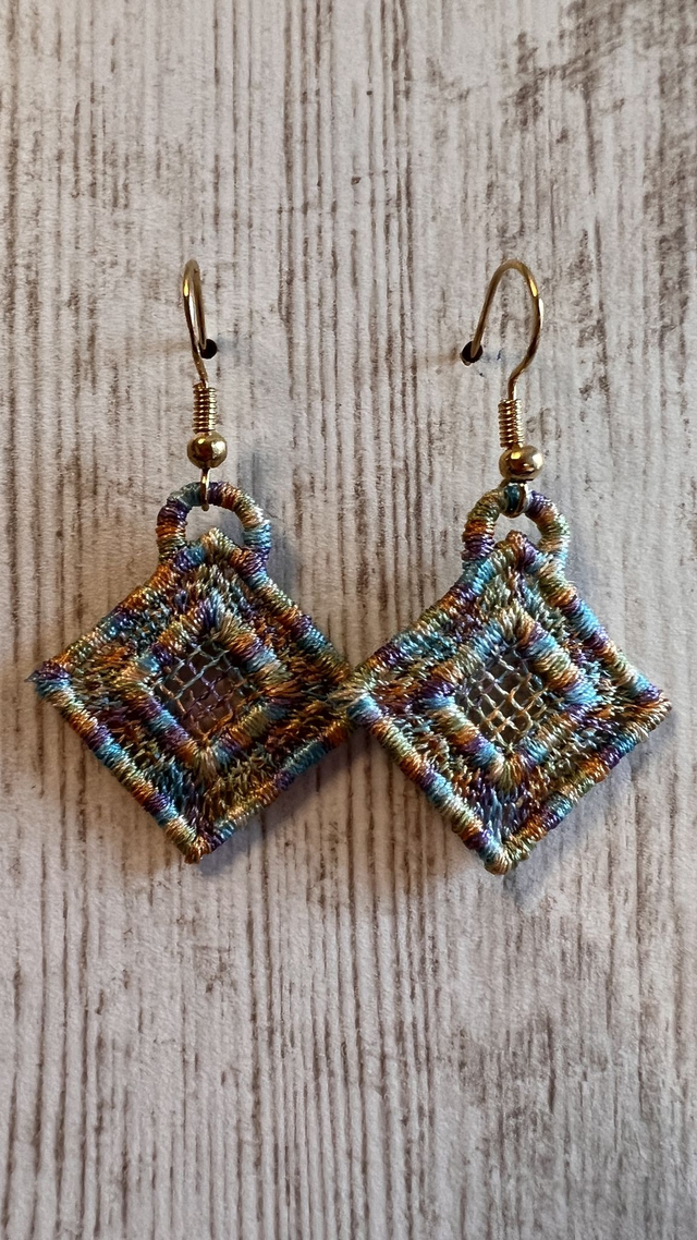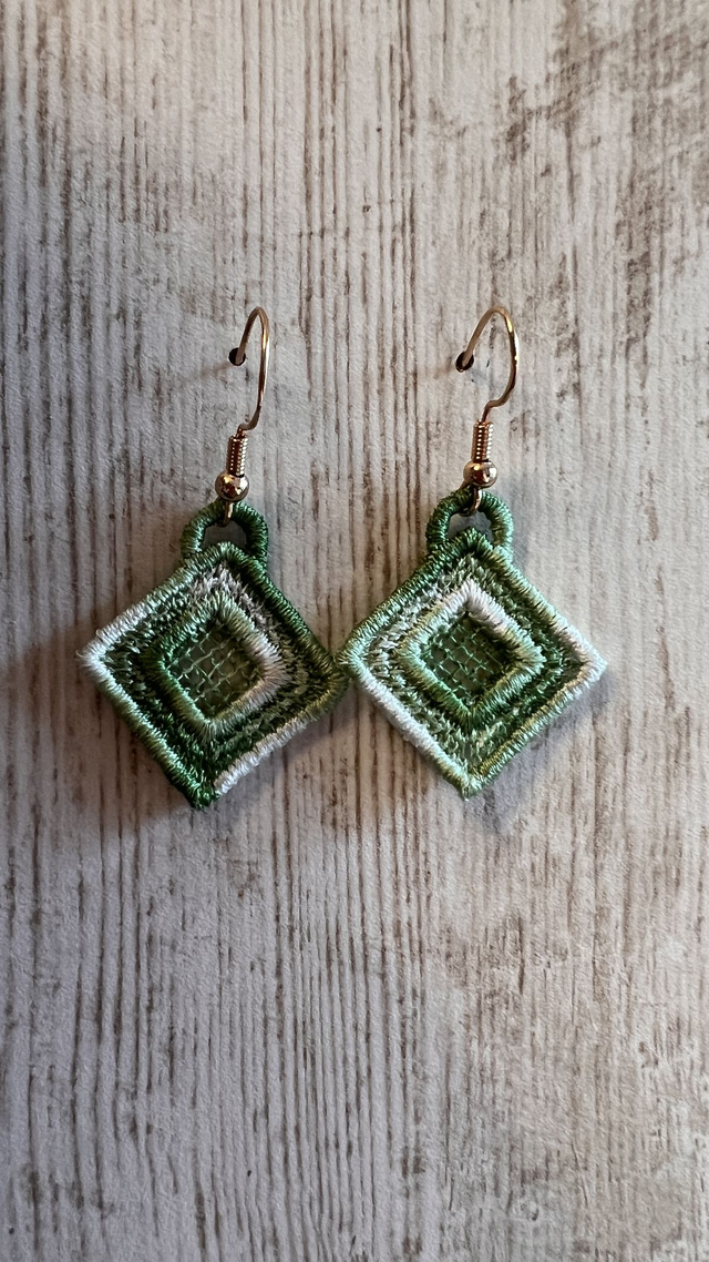 petites boucles contemporaines en forme de losanges, si fines et si légères, déclinables dans de nombreux coloris, sur fermoirs plaqués-or ou argents