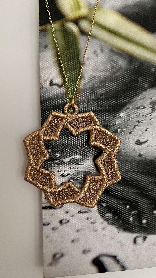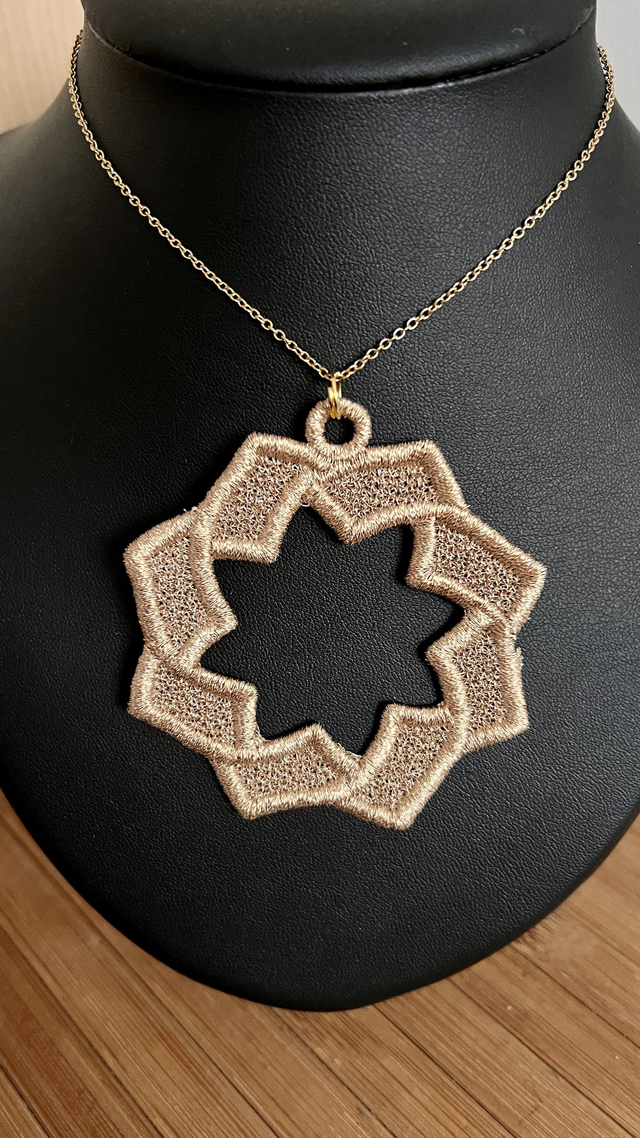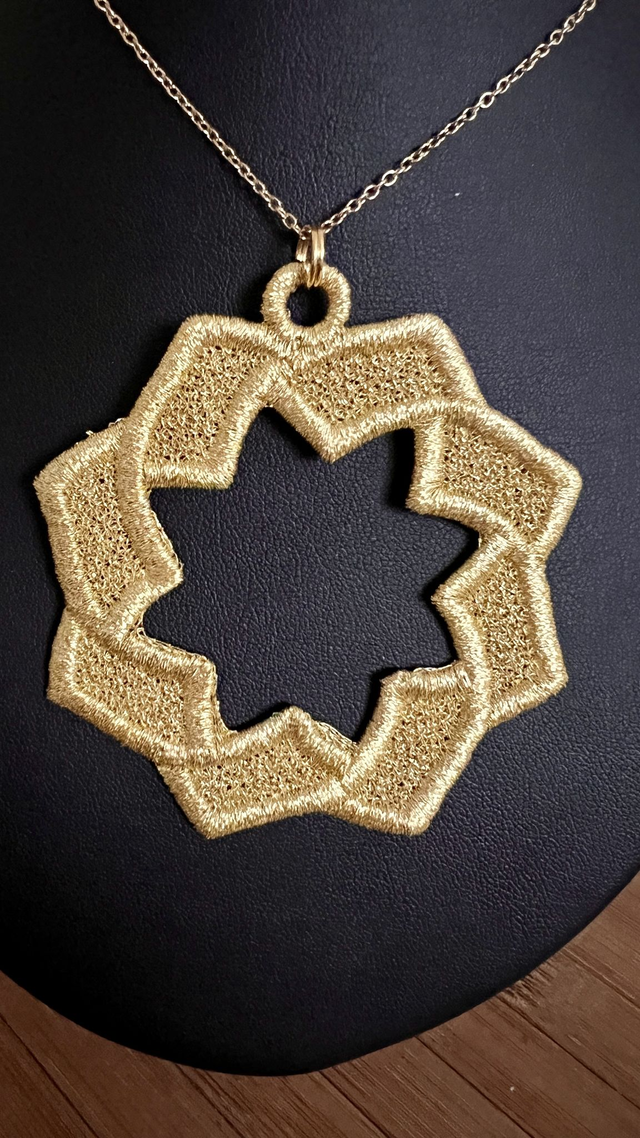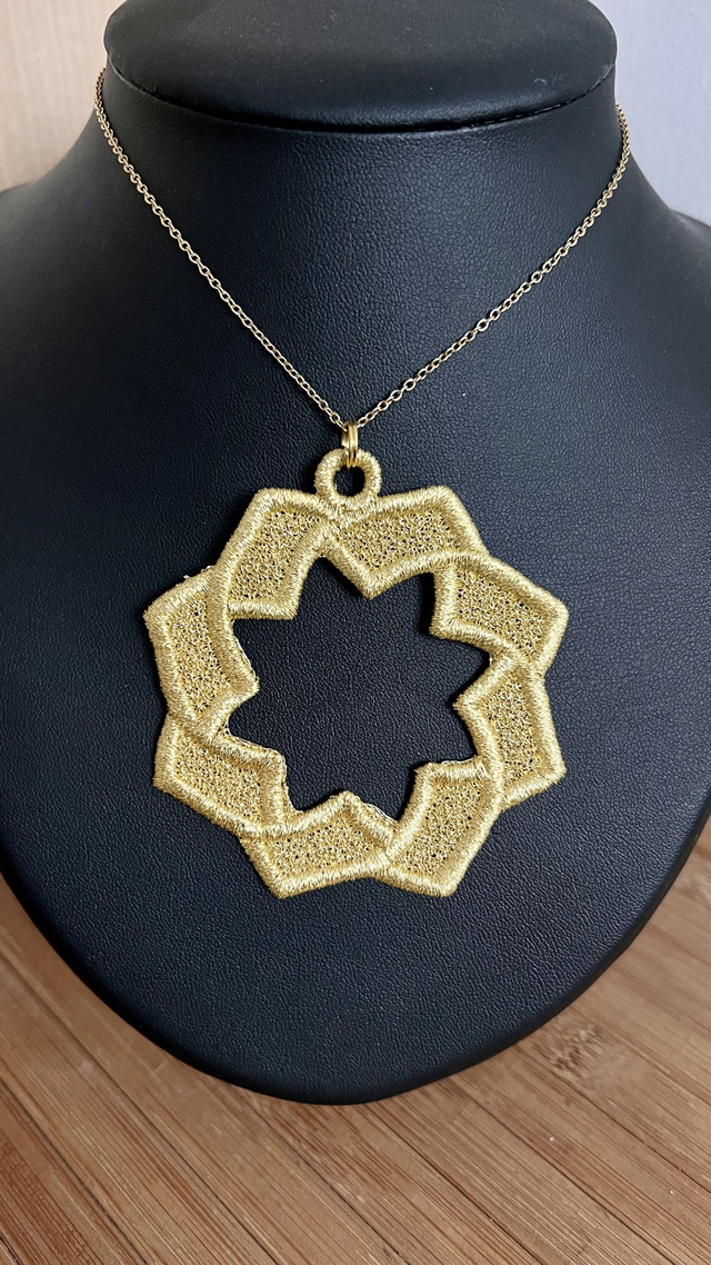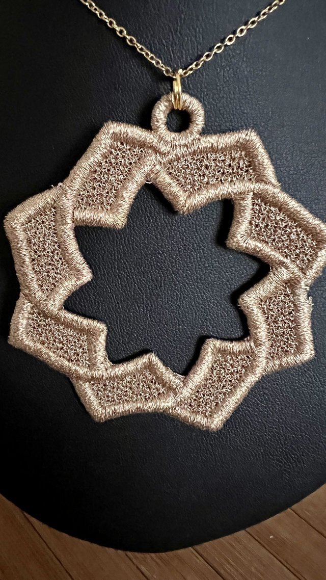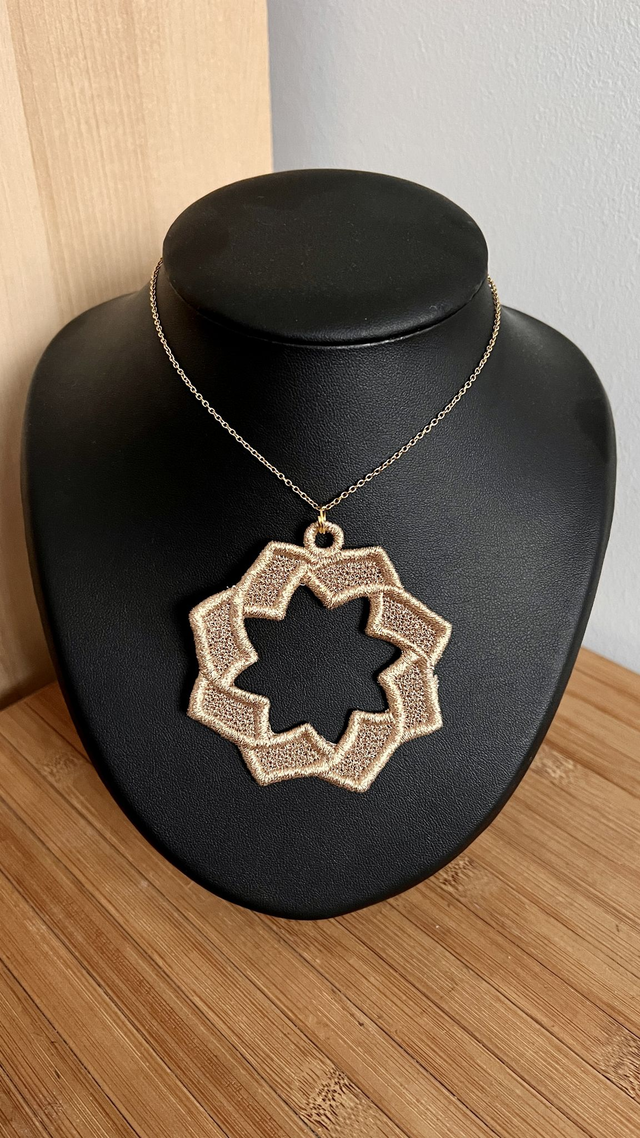 ce collier en forme d'étoile se porte facilement avec n'importe quelle tenue, sublimé par de la broderie sur fil métallisé !