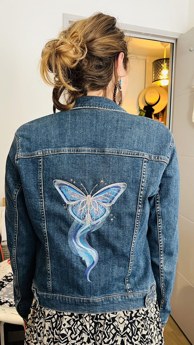 distinguez-vous avec une broderie entièrement personnalisée à votre image au dos de votre veste, qui rendra votre tenue unique ! nombreux motifs et thèmes possibles (fleurs, animaux, symboles, etc...): veste à me fournir au préalable par envoi postal ou en Click and Collect (voir modalités sur ma page Google)