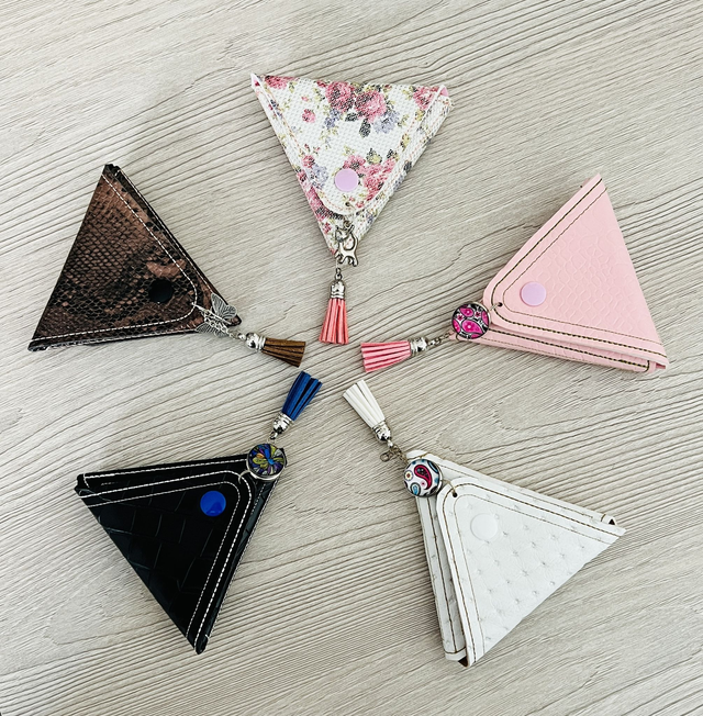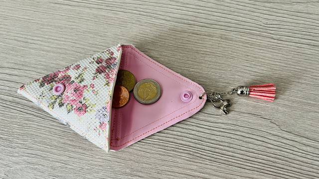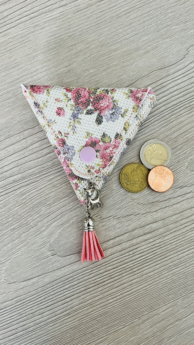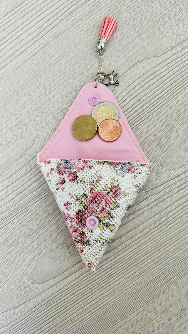 porte-monnaie créé d'une seule pièce en simili-cuir, avec son charmant pendentif (variable suivant le modèle), idéal pour votre petite monnaie